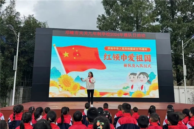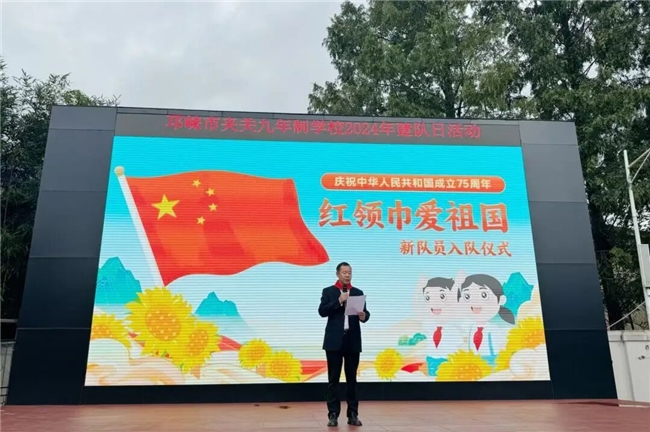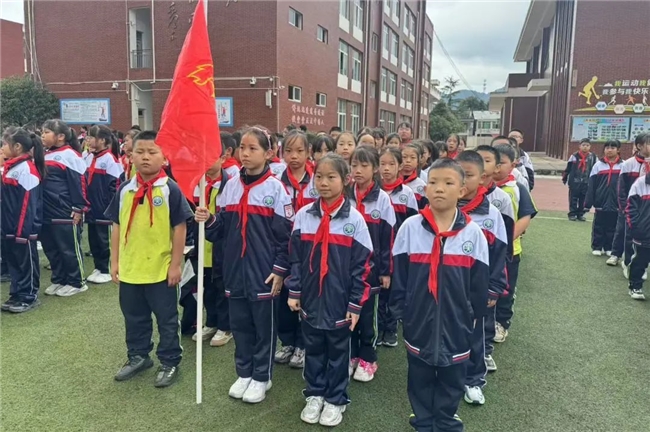 在金秋的柔光里,我们迎来了一个特殊而光荣的日子——少先队建队日。这一天,不仅是对少先队历史的深情回望,更是对新时代少年责任与担当的崭新启航。2024年10月12日,夹关九年制学校师生齐聚运动场,开展主题为“红领巾爱祖国 新队员入队仪式”的少先队建队日活动。