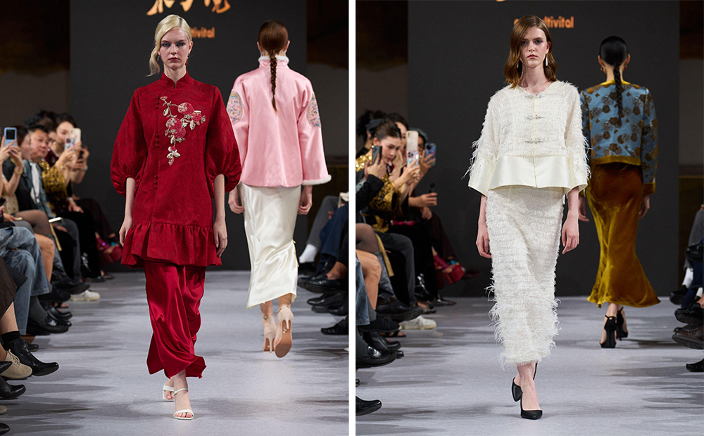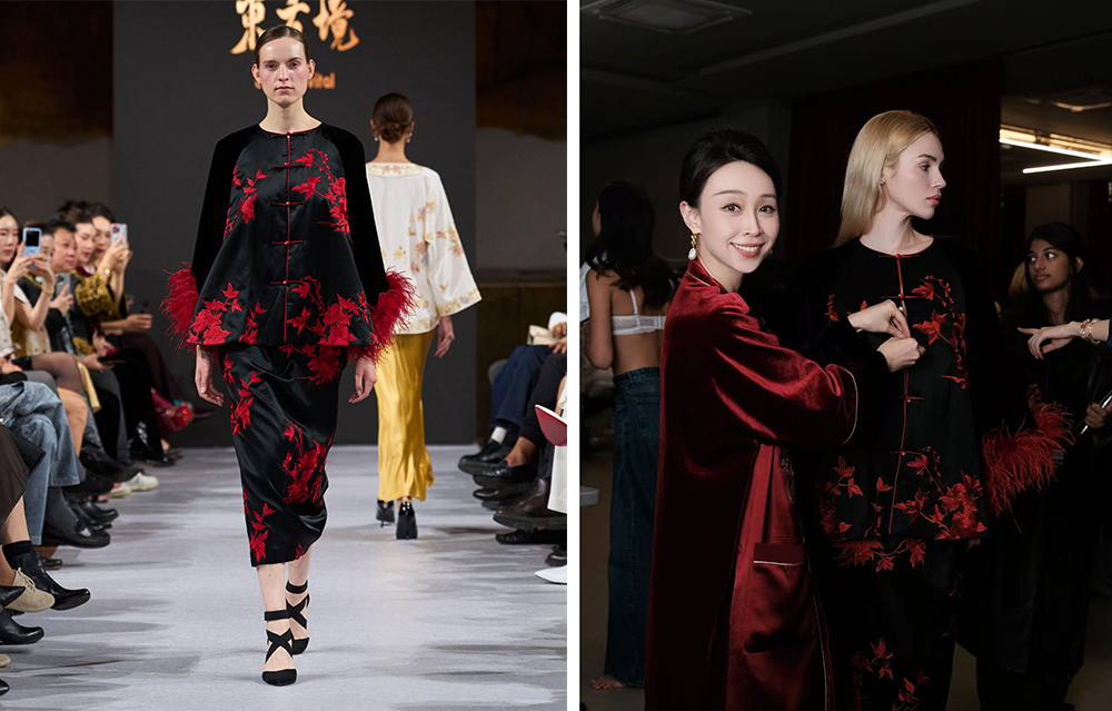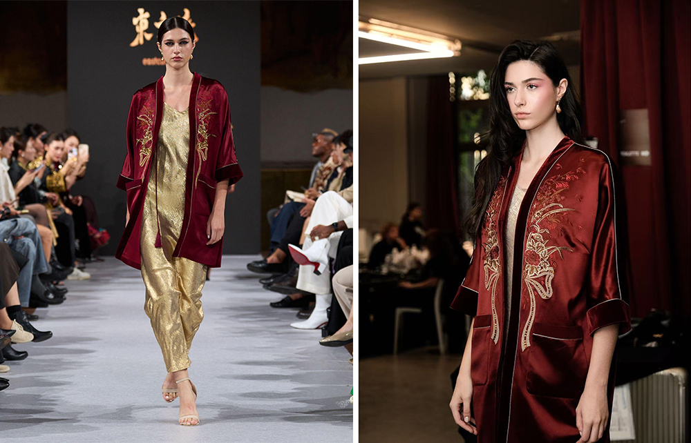 艺术世家出身的中国籍设计师Sara,将传统京绣技艺融入织物,以细腻针脚传递中国美学的深度,通过立体剪裁使经典纹样焕发现代活力。该系列强调“文脉新生”,既承古意,亦见新生。