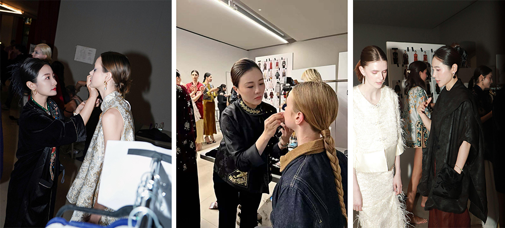 在大秀的华丽舞台背后,同样有着另一番令人动容的景象。在后台,非遗匠人团队紧张地调整每一处细节,力求呈现完美。正因如此,本次大秀不仅仅是一场视觉盛宴,更是对东方美学传承与创新的集中表达。正是台前与幕后共同的用心,才让这场米兰之秀完美呈现。