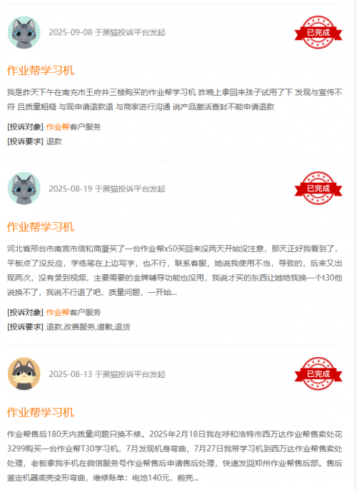 多位用户指出,作业帮在直播课程和智能硬件销售过程中存在夸大的宣传。以其学习机为例,该产品声称具有“护眼书写”“精准批改”等功能,然而实际使用中却频频出现误判、卡顿和待机时长不符的问题。