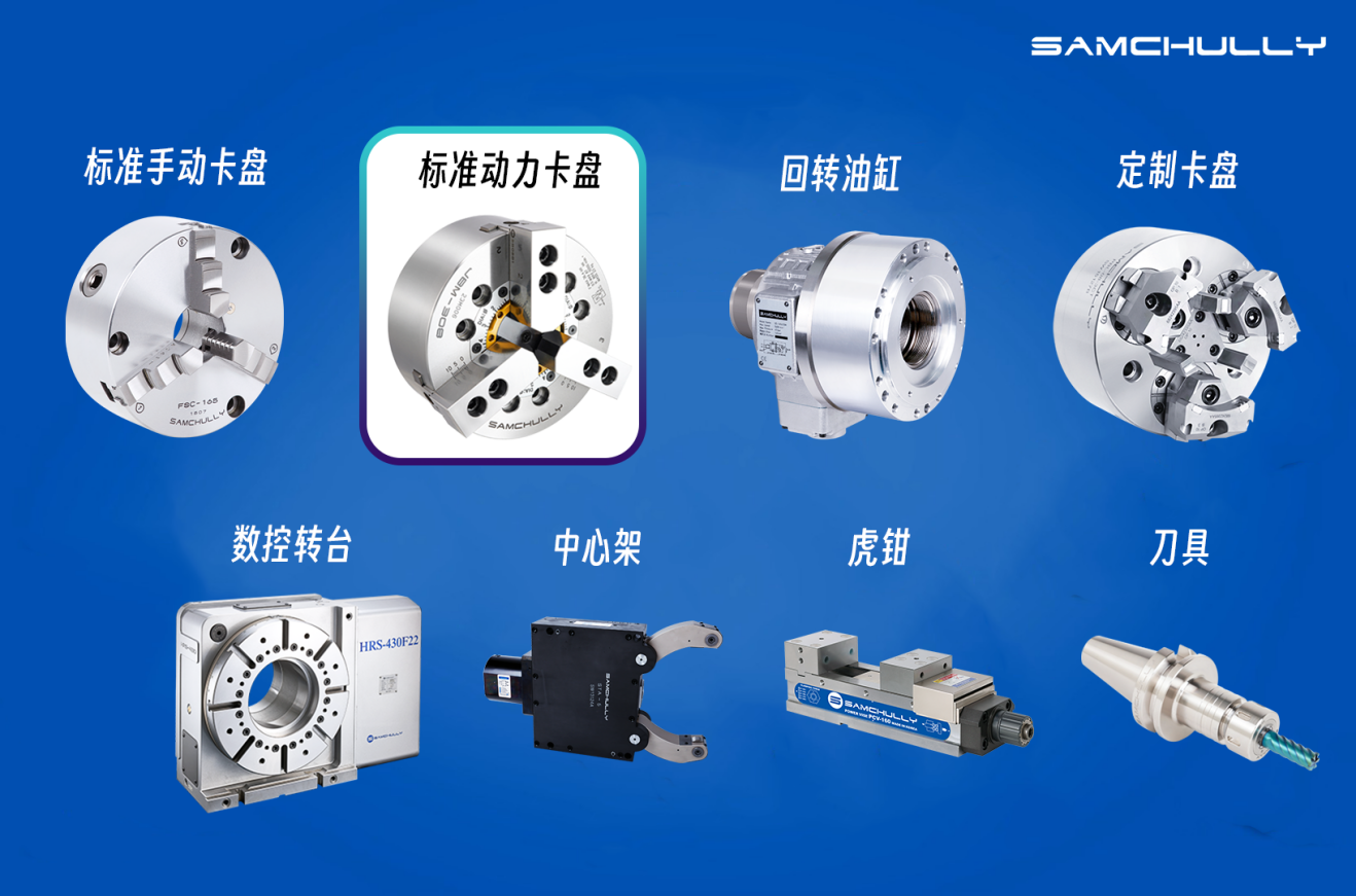 韩国三千里 (Samchully)液压卡盘系列 几乎涵盖市面上所有的标准液压卡盘规格类型,卡爪数量有三爪、四爪和两爪的形式,卡盘中心有中实、中空和大通孔的形式,还有长行程、密封型、快换爪等不同卡盘类型满足客户特殊的需求。