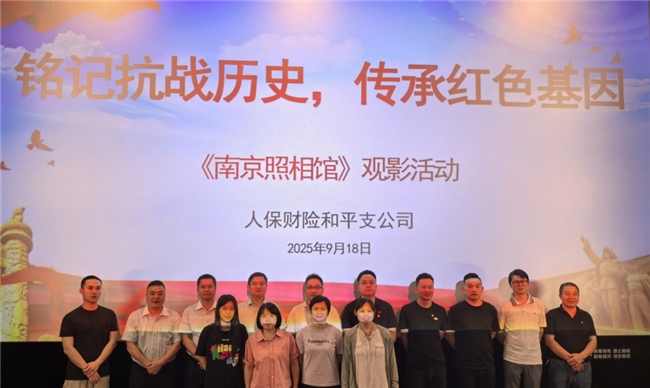 在“九一八事变”纪念日及中国人民抗日战争暨世界反法西斯战争胜利80周年之际,中国人保财险河源和平支公司组织员工观看爱国电影《南京照相馆》,以传承红色基因,凝聚爱国力量。