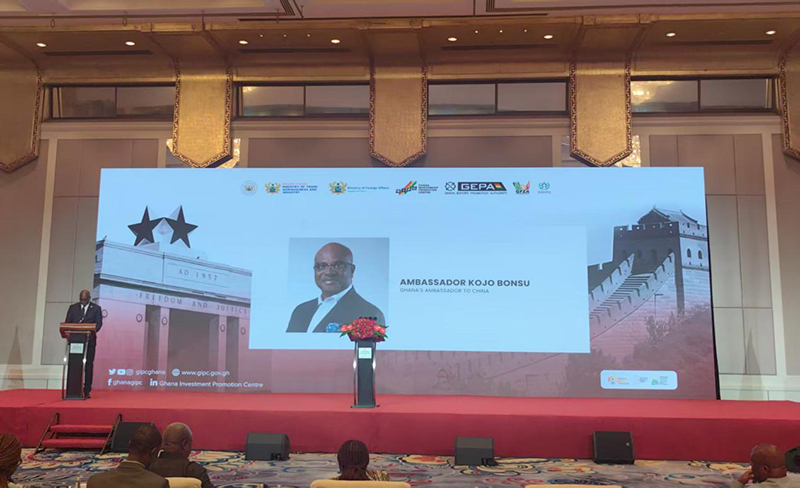 图:加纳驻华大使科乔·邦苏(Kojo Bonsu)高度赞扬中加关系,鼓励中国企业把握加纳投资机遇,实现共同发展