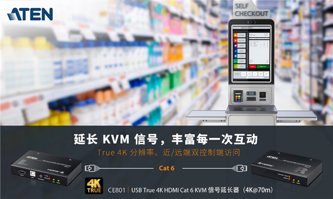 北京,中国(2025 年10 月 16 日)——领先的 KVM 与 AV/IT 连接与管理解决方案提供商 ATEN宏正今日推出 CE801 USB True 4K HDMI Cat 6 KVM 延长器,以全新方式实现高效 KVM 延长和符合人体工学的远程访问,同时将硬件设备安全隔离于工作区域之外。CE801 兼具高性能与简易操作,可通过单条 Cat 6 线缆在 70 米内传输True 4K分辨率画面(HDR10)、清晰数字音频、高速 USB 外设信号以及连续串口控制。该产品特别适用于对图像清晰度和控制要求极高的环境,包括控制室、零售、医疗、制造业,甚至家庭影院等应用场景。
