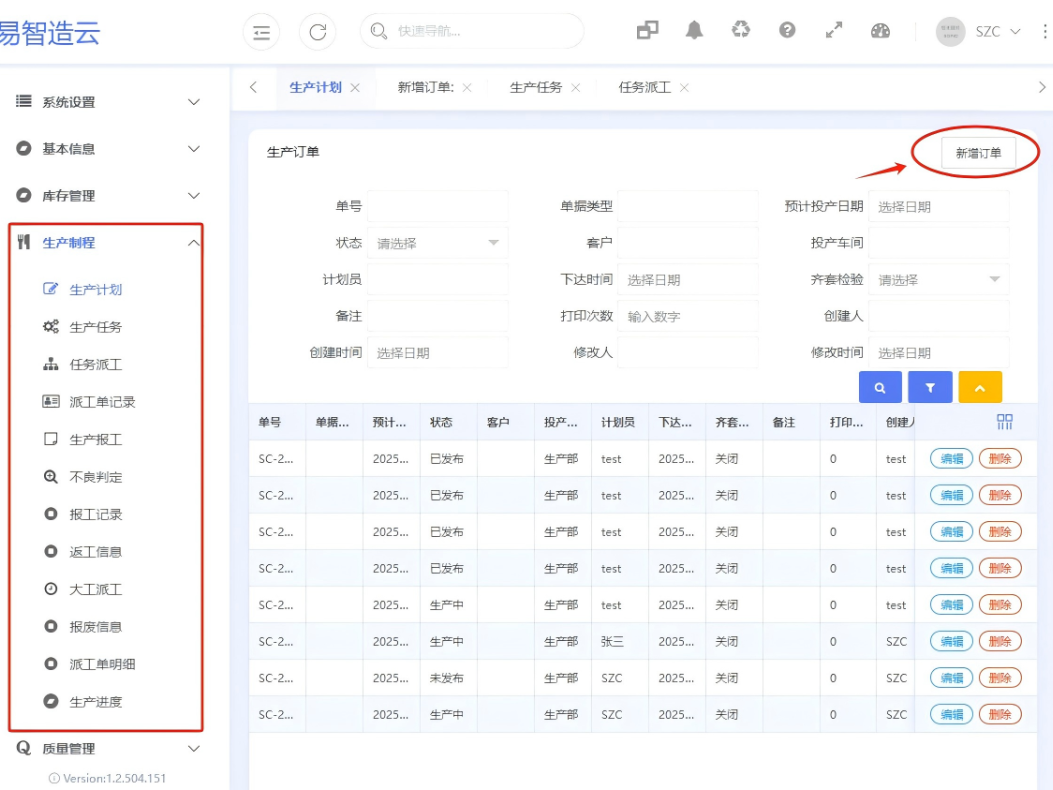 生产计划模块支持企业根据订单需求、设备能力与物料情况,科学制定生产计划。功能包括: