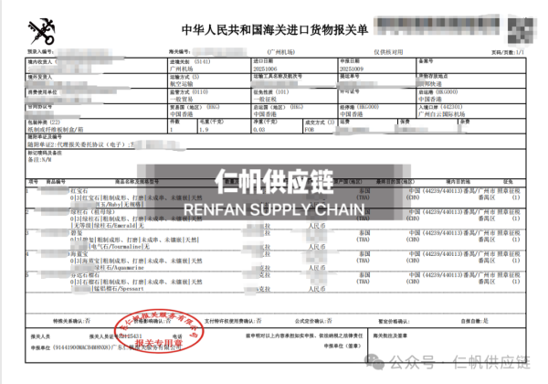 备注:仁帆服务涵盖:根据客户提供货物发票等信息代理制单,代付外汇,提供抬头资质,代办进口红宝石备案,满足您不同进口需求,贴心服务。