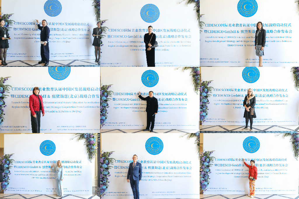签约仪式现场,国际美学与美容学委员会(CIDESCO)主席玛丽(Mary O'Donoghue)女士、副主席阿德里安(Adrienne Guttuhaugen Hughes)、执行董事戈登(Gerard Gordon)、教育总监朱莉(Julie Lew Yoke Peng)、运营推广总监艾瑞卡(Erika Ferreira)、国际美学与美容学委员会(CIDESCO)中国分会(香港)主席 Sindy Chan 女士、国际美委会(CIDESCO)国际考官陈琴(Jean Chen)、以及日本Blossom株式会社董事长西良人(yoshihito nishi)等嘉宾亲临,与行业代表共同见证这场改写中国美容师职业轨迹的合作启动。