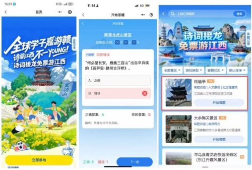 好的文旅产品,往往能从厚重的文化资源中找灵感,在高质量发展的时代大潮中找动能,“全球学子嘉游赣”和“诗旅江西”是近年来江西打造的两大特色鲜明的文旅品牌,一边装着诚意满满的文旅优惠,一边系着文脉传承的深切希冀,从2024年背诵指定诗词减免景区门票,2025年,这两大IP在融合创新中又延伸出新的体验和玩法。