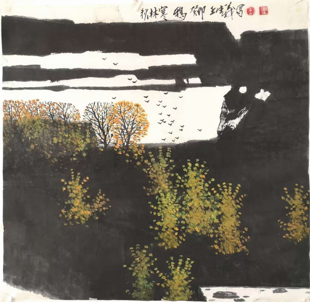 秋林寒鸦(68x68㎝)2024