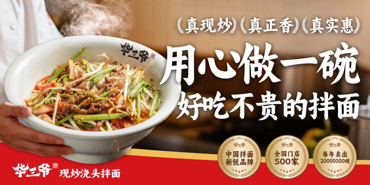 当资本竞相涌入预制菜赛道,试图以标准化和效率改写餐饮业的游戏规则时,一家来自街头巷尾的品牌却选择了一条看似更“笨重”的路——猛火、宽油、手颠勺,在升腾的锅气中,将一份份现炒拌面送到食客面前。四年时间,华三爷拌面从一家寻常的街边小店,成长为签约门店突破500家、年营收超3亿元的餐饮新势力,并在2025年底接连斩获四项行业重磅奖项。