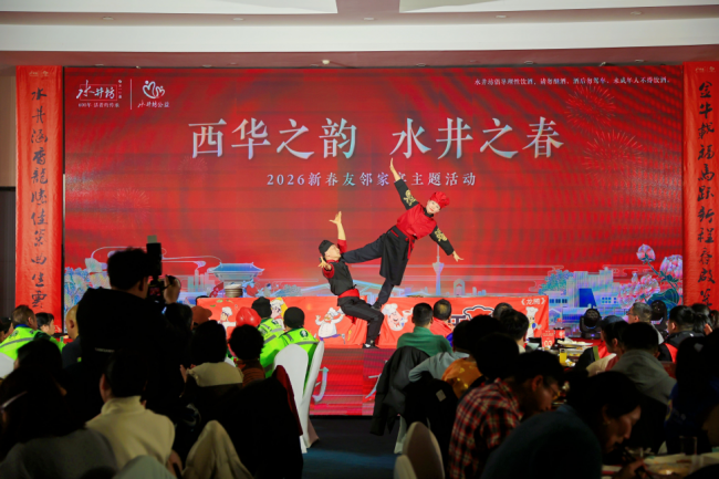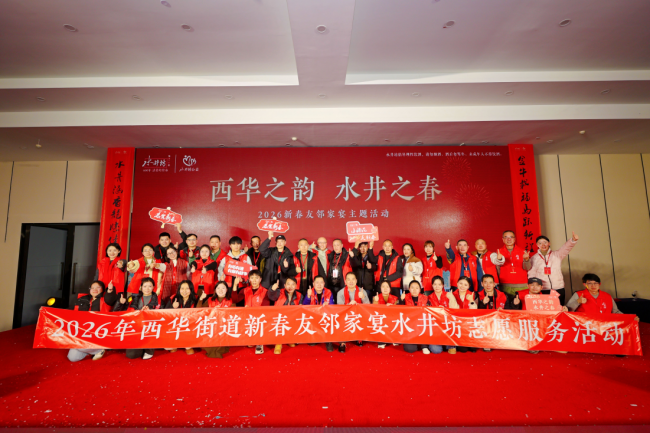 “今年这春联写得真好看,太感谢啦!”2月5日下午,西华街道的活动广场上,居民张先生拿着刚领到的手写春联,笑着跟水井坊志愿者打招呼。当天,“西华之韵 水井之春——2026年新春友邻家宴”如期开席,400多位街坊、水井坊员工志愿者与社会各界朋友齐聚一堂,这场连续举办三年的社区活动,早已成了周边居民过年的“固定节目”。