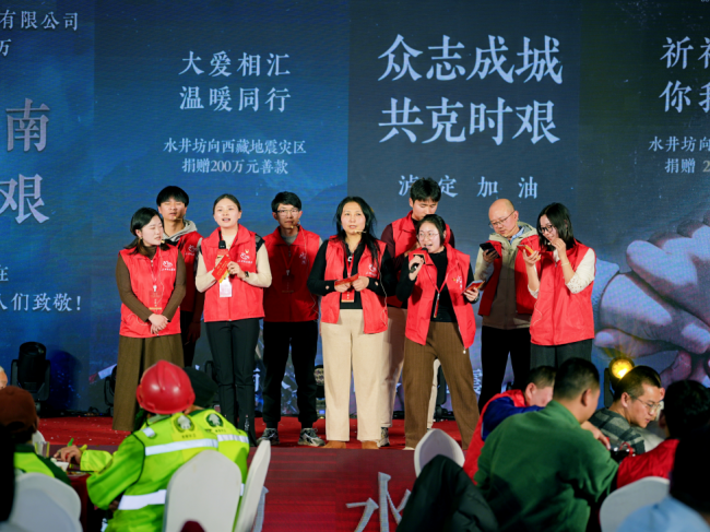 宴席间,水井坊工作人员给每位街坊送上红围巾和伴手礼,红色的围巾映着大家的笑脸,成了冬夜里最暖的风景。40多名水井坊“小酒花”志愿者更是最动人的风景线,他们中有不少本身就是西华街道的居民,主动化身服务者,在各个岗位上各司其职、忙碌穿梭,串联起企业与邻里的温情纽带,让这场家宴更添温度。
