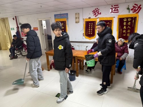 活动当天,实践团成员怀揣真挚心意抵达养老院。在工作人员的安排指导下,同学们迅速投入志愿服务,分工协作、井然有序。一部分同学拿起扫帚、抹布,仔细清扫走廊、擦拭门窗桌椅,并协助整理老人房间杂物,全面清洁院内环境,为老人们营造出更加整洁舒适的居住空间。