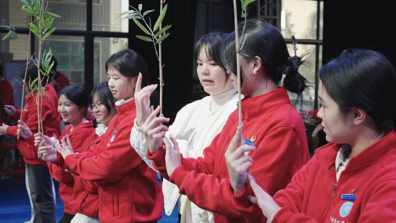 在传承中心,实践队的师生们现场观看《跑四美》《唐二别妻》等经典剧目选段,演员们“唱念做打”间的程式之美,将闽南乡土记忆与文化根脉娓娓道来。实践队成员还与传承人交流探讨青年一代参与竹马戏(芗剧)传承的路径方法,更得知这里作为“浦台两岸文化交流示范基地”,每年都迎来两岸演员同台演绎,戏韵声声化作两岸同胞心与心的联结,“芗”音亦是“乡音”。