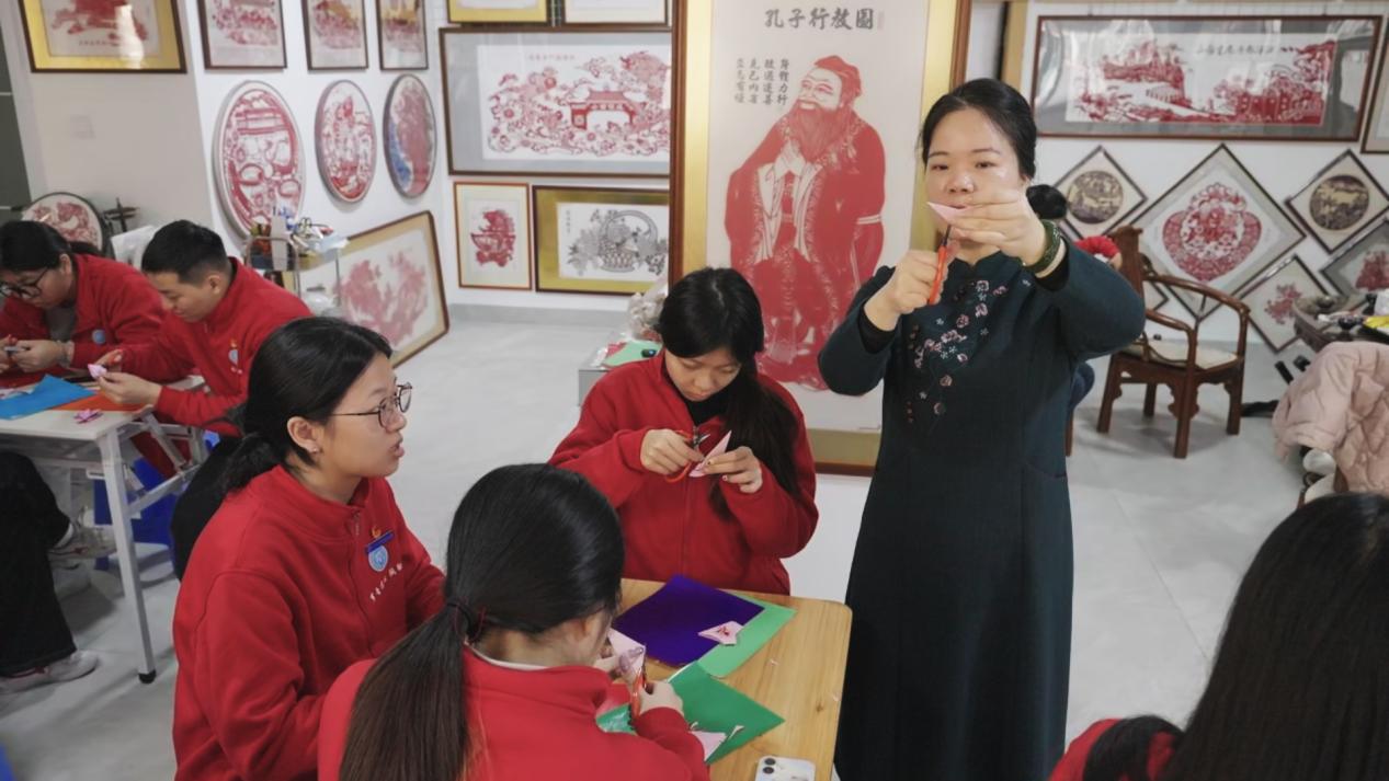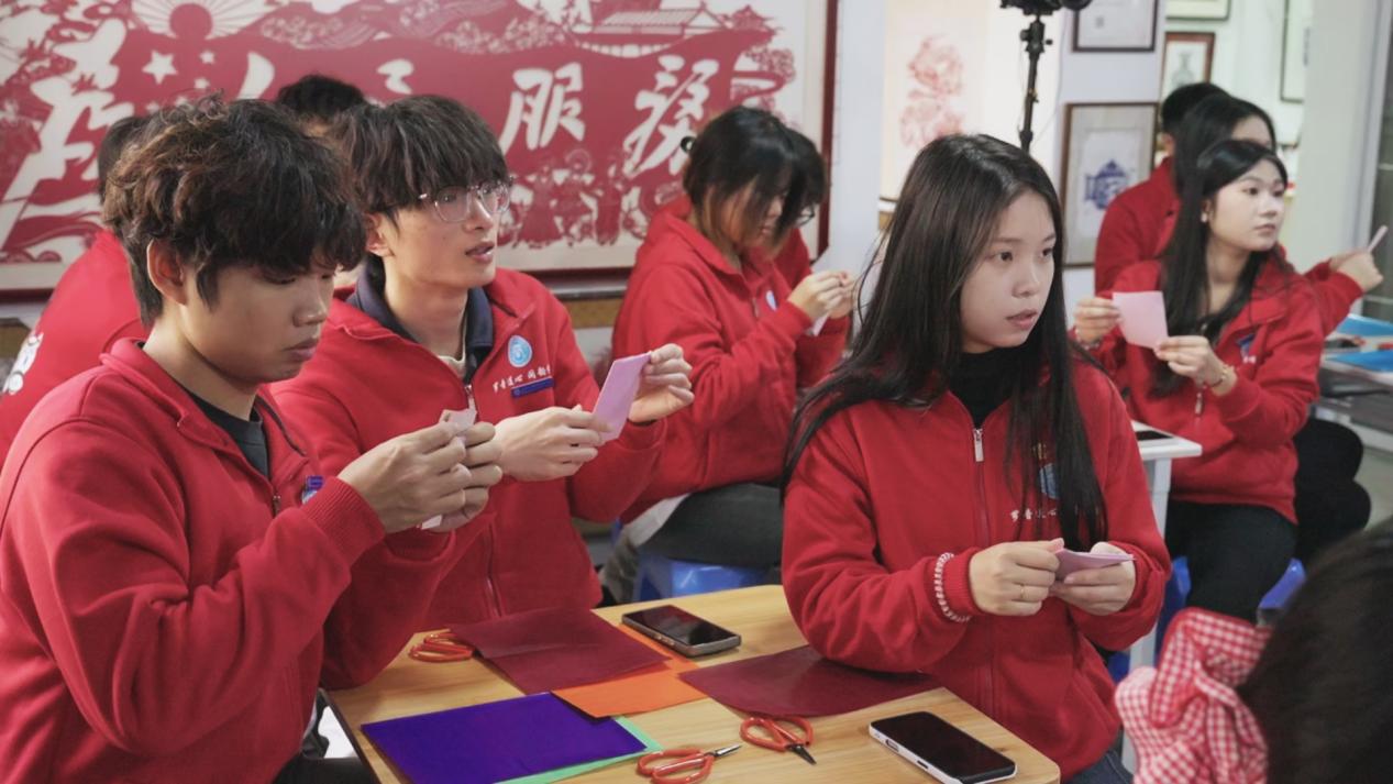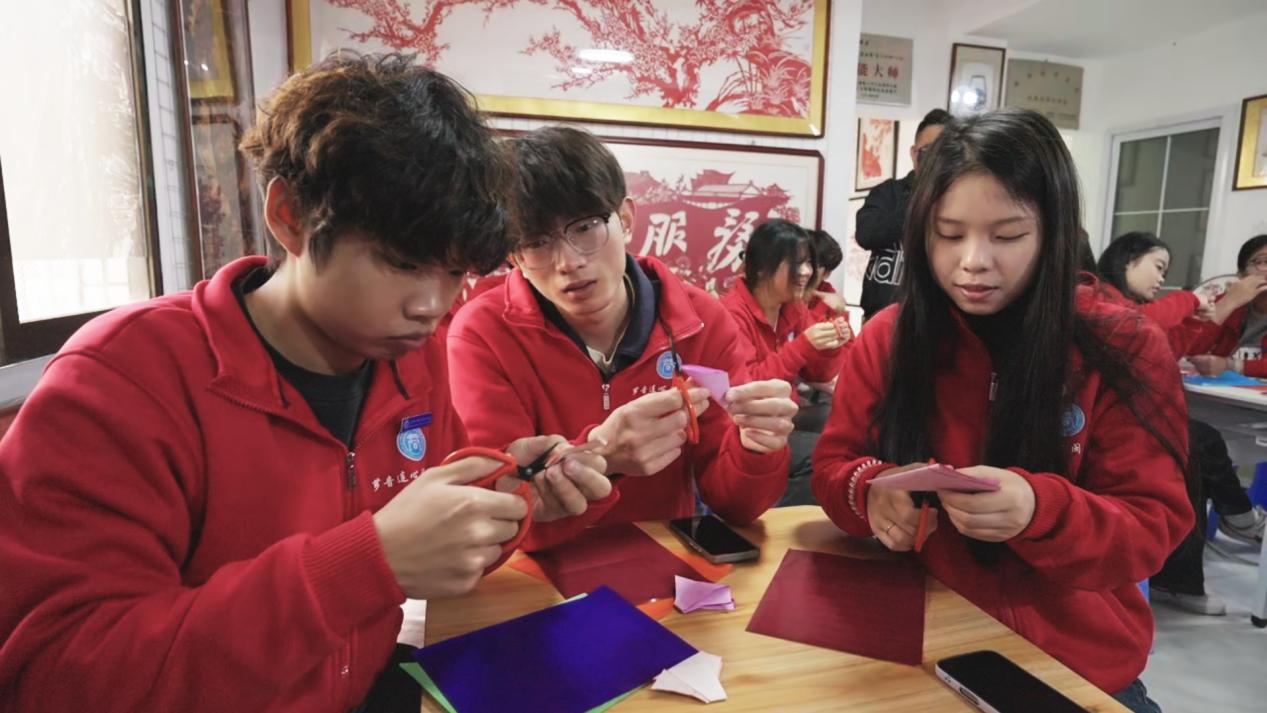 “漳浦剪纸技法明清时便随移民入台,如今台湾剪纸的纹样、手法与我们一脉相承。”欧阳艳君老师的话语,道出漳台剪纸的同源之根。实践队了解到,多年来两岸剪纸艺人常互访交流、联袂创作,共同打造的作品在海峡两岸巡展,让这门指尖技艺成为两岸文化认同的鲜活载体。队员们亲手体验剪纸创作,在一折一剪中体悟非遗传承的匠心,更读懂了蕴藏其中的两岸同源文化密码。