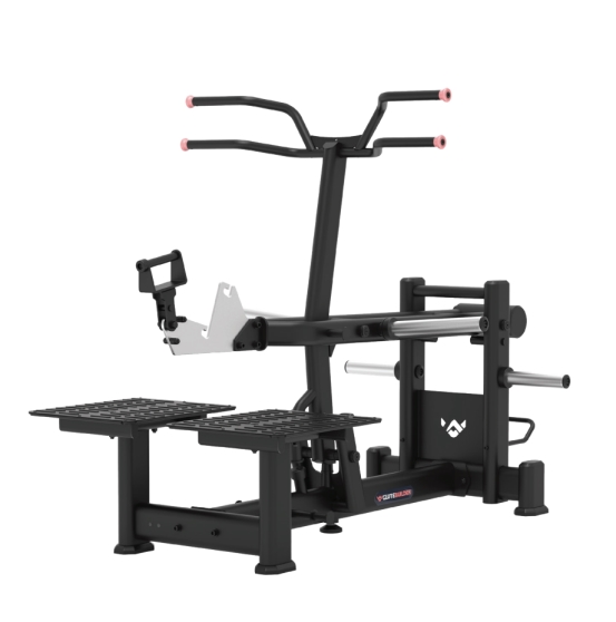 钟摆式后蹬训练器通过独特的弧形轨迹与双联动系统,有效避免股四头肌过度参与,确保髋关节与臀大肌实现孤立发力,是塑造臀部形态的精准工具。