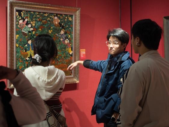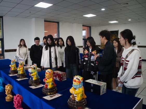 国家级非遗漆线雕的工坊里,实践团沉浸式感受了这门“指尖艺术”的精妙。国家级传承人郭劲旺为成员们讲解调漆、搓线、盘绕、贴金的全套技艺,大家亲手触摸温润的漆泥,尝试用细如发丝的漆线依图盘绕,才知这无胶盘绕的技艺,需凝心神于毫厘之间。当为自己的作品点上0.03微米金箔膏勾勒的金光,成员们真切体会到“慢工出细活”的匠人精神,也从郭劲旺“非遗+研学”的传播模式、让女儿加入传承行列的选择中,读懂非遗传承的守与传。