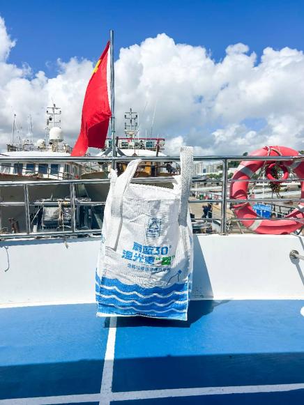我们研发了防水、可折叠、能捆扎的海上专用回收袋。它不占地方,能固定在甲板角落,渔民随手就能把塑料垃圾归拢进去,像多了一个耐用的“渔具”