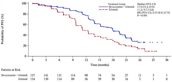厄洛替尼联合贝伐珠单抗可显著提升无进展生存期(PFS)[5]